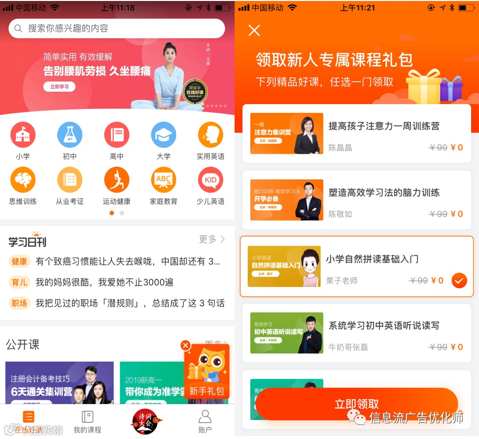 同时成功添加辅导员微信后,辅导员会立即再送你一堂课,用户对其好感迅速up,成功吸引到了用户眼球。
