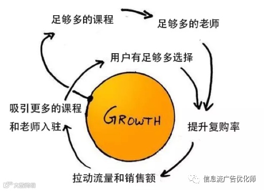 按照优先级,依次解决两方痛点,步步逼近增长飞轮的切入点,即吸引到足够多的好课程和好老师,然后产生推动力1,2,3,进而周而复始,循环往复,带动增长飞轮。