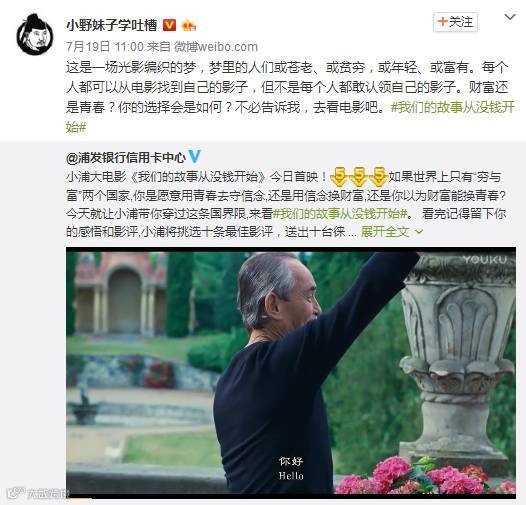 浦发信用卡携手W 以及戛纳金师导演罗景壬,共同打造了一部风格独特的品牌电影,7月19日《我们的故事从没钱开始》首映,全片18分钟半。