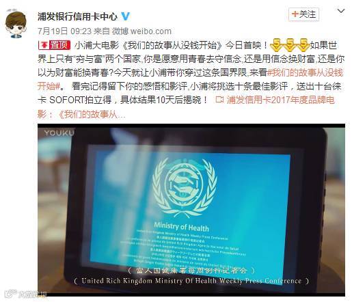 2017年7月,浦发银行进行新一轮的信用卡营销以及品牌推广,制作有趣的H5进行卡推荐,并且与神州专车联名的信用卡AR互动小游戏,以及通过“长篇小说”以及“大电影”——《我们的故事从没钱开始》,探讨人生和青春的意义。