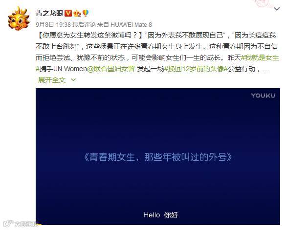 当这些微博、微信KOL们集体为话题发声、为话题推广,让公益视频进入更多人的视野,让更多的人注意到这些青春期女生们的心理。
