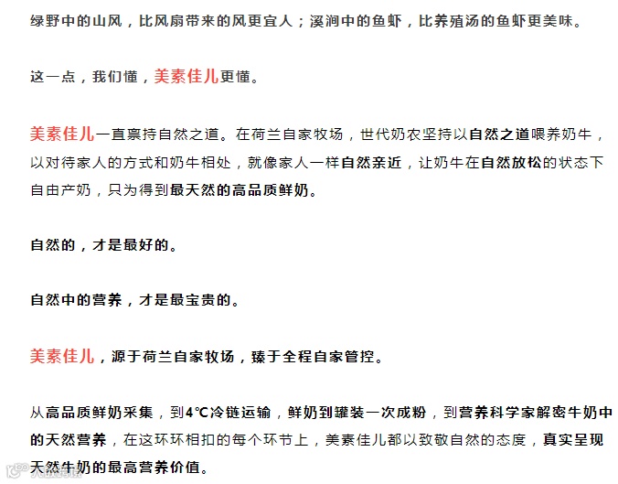 美素佳儿臻于全程自家管控,坚守自然之道,2017年,以“致敬自然”为主题,开展新一轮营销。