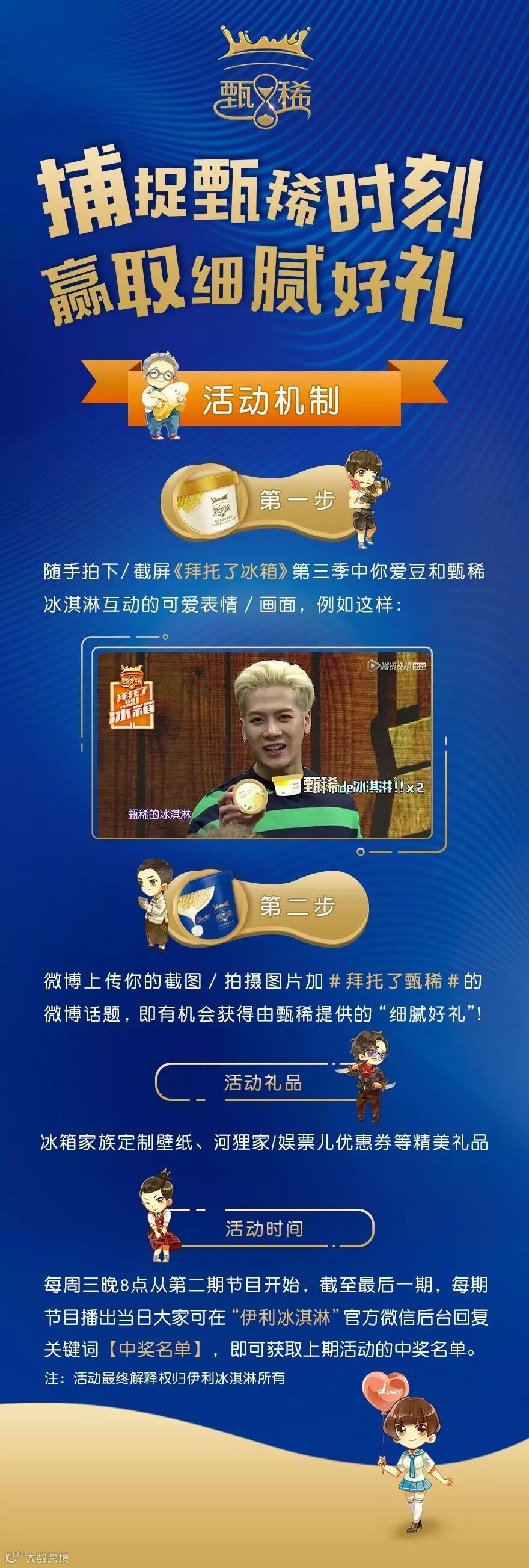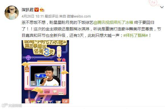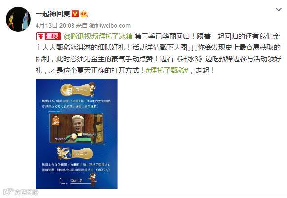 随着腾讯视频 《 拜托了冰箱 》 第三季热映,冠名产品“甄稀冰淇淋”推出有奖活动!借由明星偶像们的超高人气,在线上与粉丝进行互动并达到话题推广的效果。