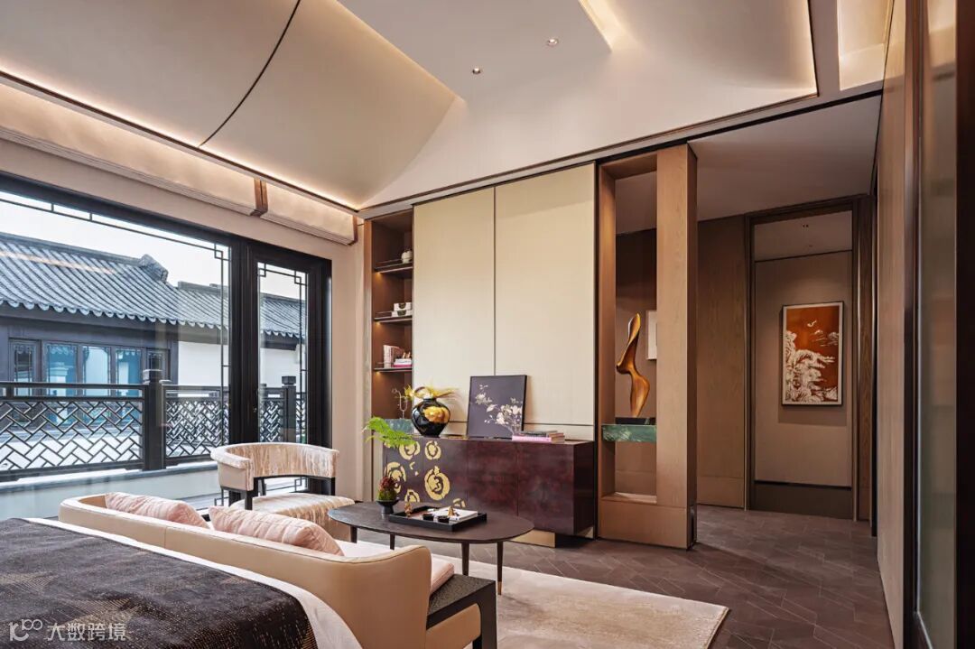 在凤熙书院新样板间,传统与现代的对话充满智性光芒。安缦御用品牌 Stellarworks 家具被设计师安放在各个空间,艺术家曾梵志、王志新、张向明的版画,雕塑家向京、瞿广慈的雕塑摆件,以及少数民族铜鼓及木雕点缀其间。这种“融合品牌产品、艺术品及传统器物”的软装设计理念,让空间成为流动的文化容器。
