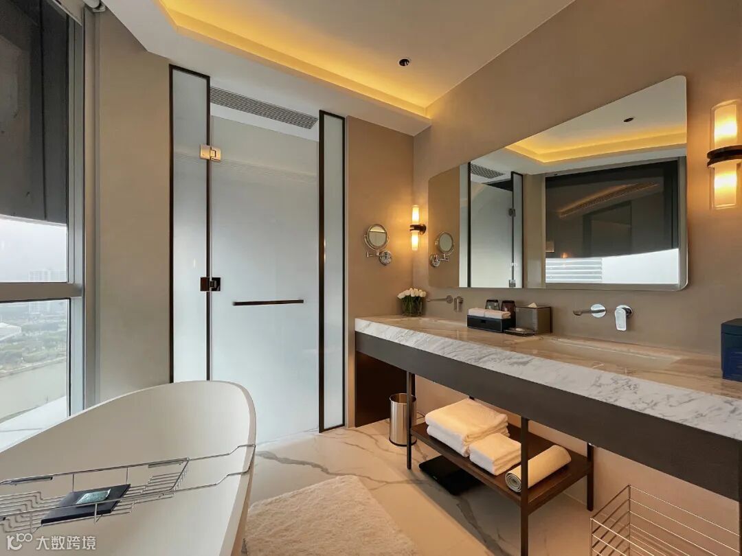 睡眠区尊贵精致之余,更呈现舒适和温馨,于繁华都会中打造一方乐土,是现代精英人士的理想的“家外之家”。尊享套房配备舒适宽敞的大床、55 寸平面液晶电视及可提供手机无线充电的蓝牙音箱等。