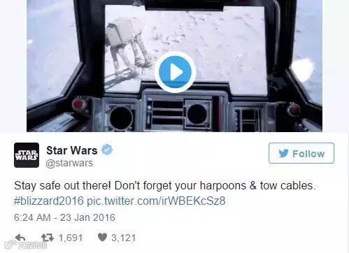 首先是《星球大战》,号召人们不要忘了用鱼叉和拖缆武器抗击暴风雪。
