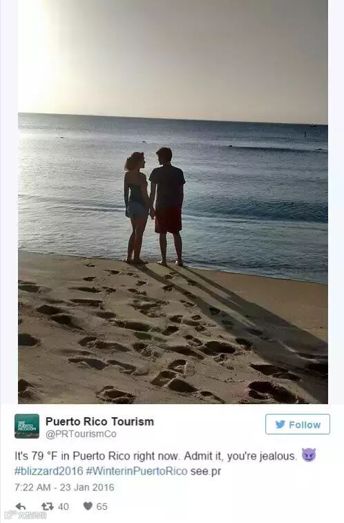 还有借机拉仇恨的,不少旅游公司都贴出了温暖的海滩照片,吸引人们前去度假。