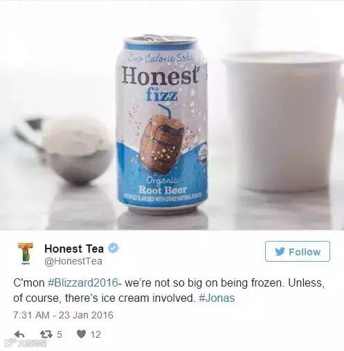 与中国社交网络上层出不穷的段子一样,不少美国品牌借助暴风雪的热门话题,在社交网络上玩起了营销。