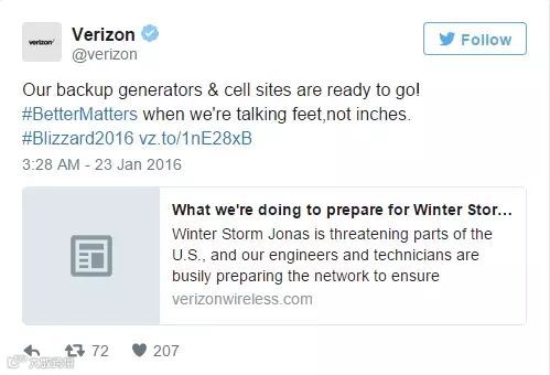运营商Verizon发了长文章说明他们的基站保障措施,确保用户服务不受暴风雪的影响。