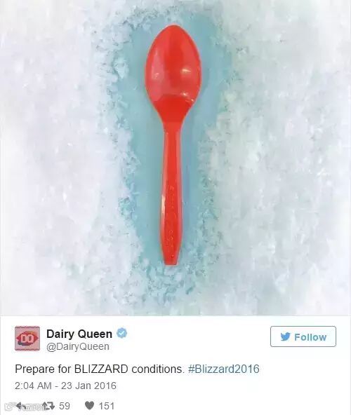 和暴风雪天气最契合的,莫过于冰激凌品牌Dairy Queen了,产品就是“暴风雪”,直接体验一下吧。