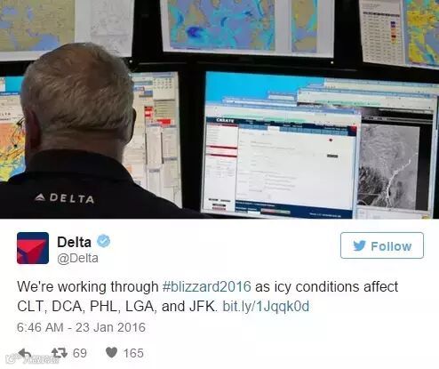 Delta航空展示了他们在极端天气仍然坚守岗位。