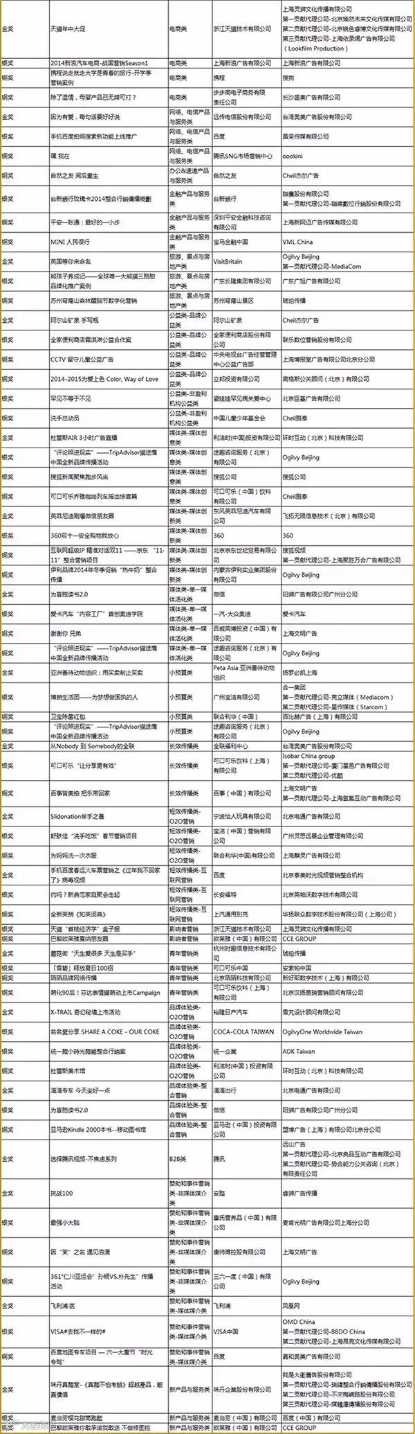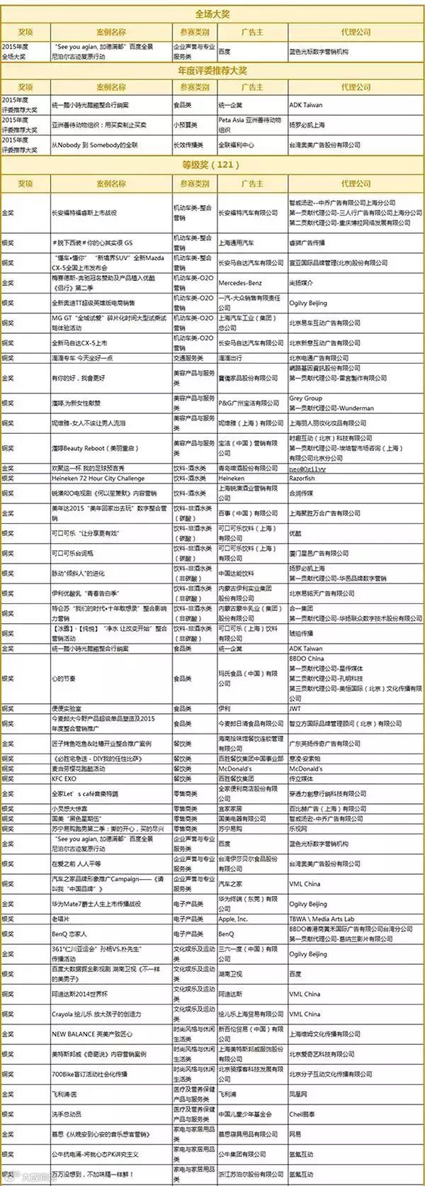 附:2015大中华区艾菲奖获奖名单