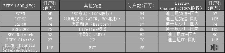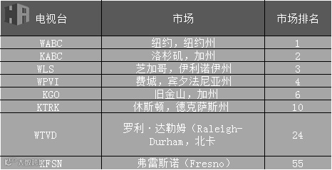 广播包括国内广播网、电视节目制作以及发行运营,还有八座自有的电视站。迪士尼在Hulu还占了33%的股份,有Fusion50%的股份。