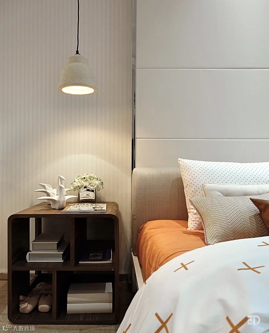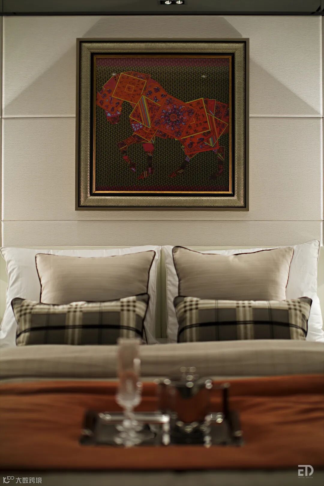 设计师用米白色、浅啡色和橙色创造尊贵质朴的居家生活场景,不受约束的马元素,自然时尚的非洲原始部落主题,营造自然人文的格调。