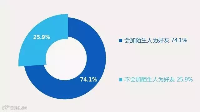 1074.1%的90后会在即时通讯软件中,加陌生人为好友,25.9%不会加入陌生人。