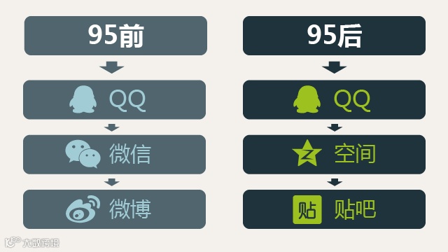 195后基本不用微信,98%的微信用户是都是成年人。而QQ社群中,10-29岁的用户占比达到80%。