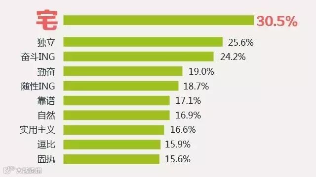 330.5%的90后认为自己很宅,62%的90后最喜欢的休闲娱乐方式为宅在家里上网,位列90后自我评价中前三的还有独立和奋斗。