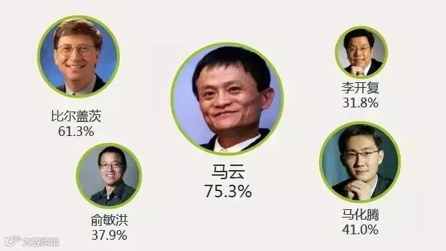 554.9%的90后崇拜商界精英,领袖伟人紧随其后为31.2%。在商界精英中,马云威望最高,为75.3%,比尔盖茨61.3%,马化腾41.0%。