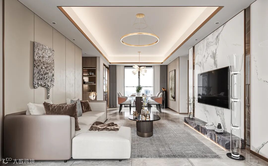 颐安·俪都府位于广州花都区府地块、花都CBD中轴线范围之内。本案将国际潮流及东方审美融入产品精神之中,通过打造舒适而高品质的精装修住宅,形成产品差异化竞争优势。本篇展示的是C1户型是室内设计及陈设软装方案,风格以“现代轻奢”为主导。本方案非最终执行图则,在后期实施阶段有部分优化。