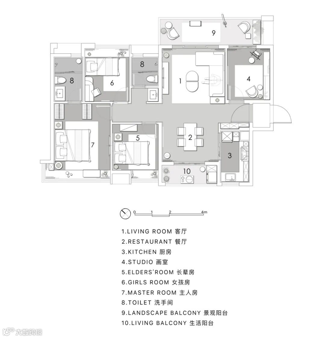 标准装修的空间通过不同的软装展示赋予更多的使用功能,可以是卧室,也可以是书房、画室、茶室等。在需求明确及成本指标限制下,室内设计师需要精确地响应客户的需求,提出最优解方案。