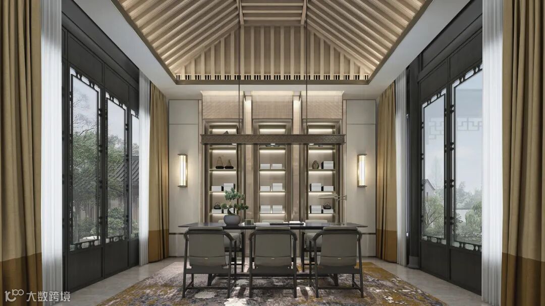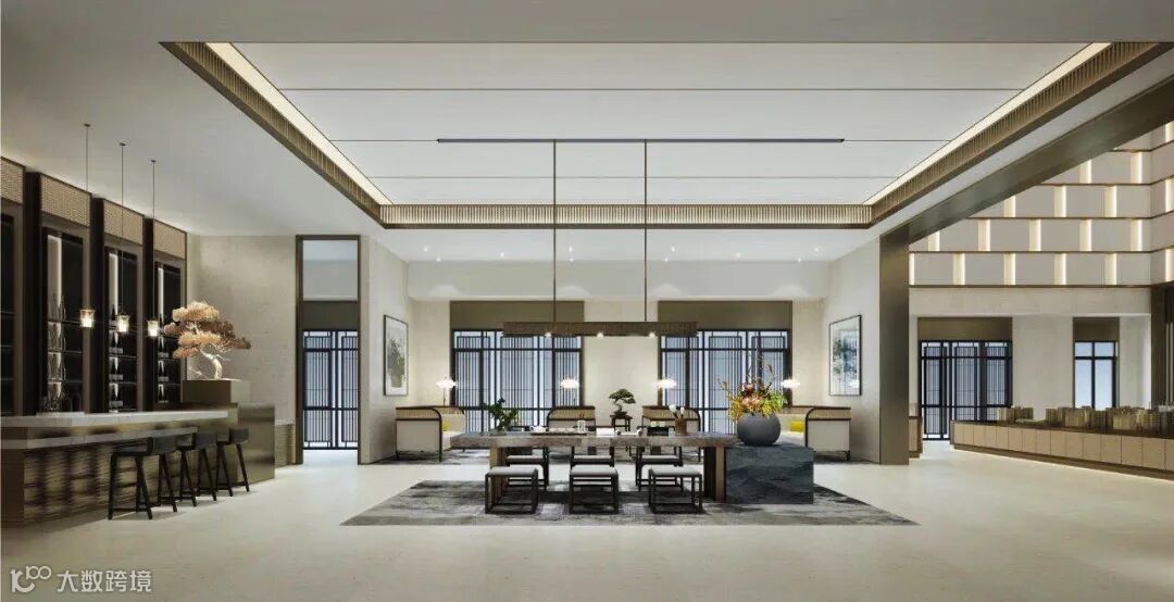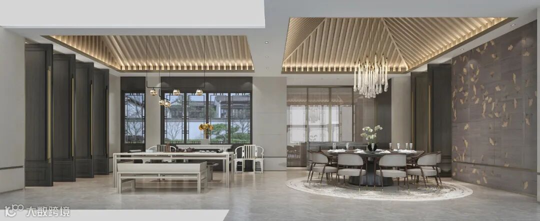 中式语境辅以现代设计手法表达对清雅含蓄、诗意内敛的宋风精神境界的追求。诠释中国传统美学在当代观照下的承袭与发展,结合现代东方审美营造尊贵体验的空间。