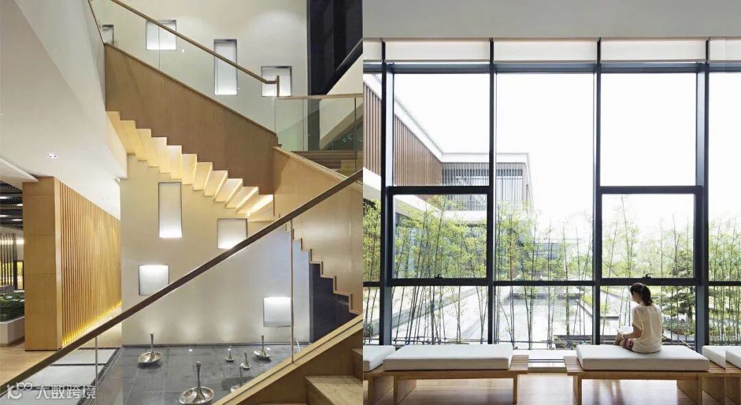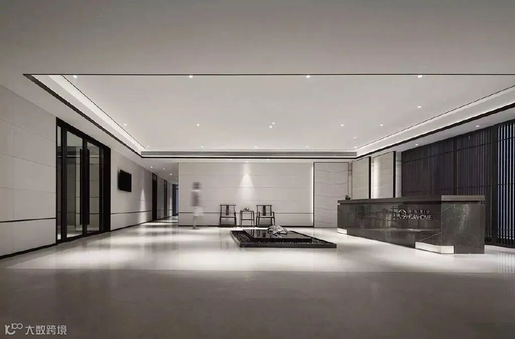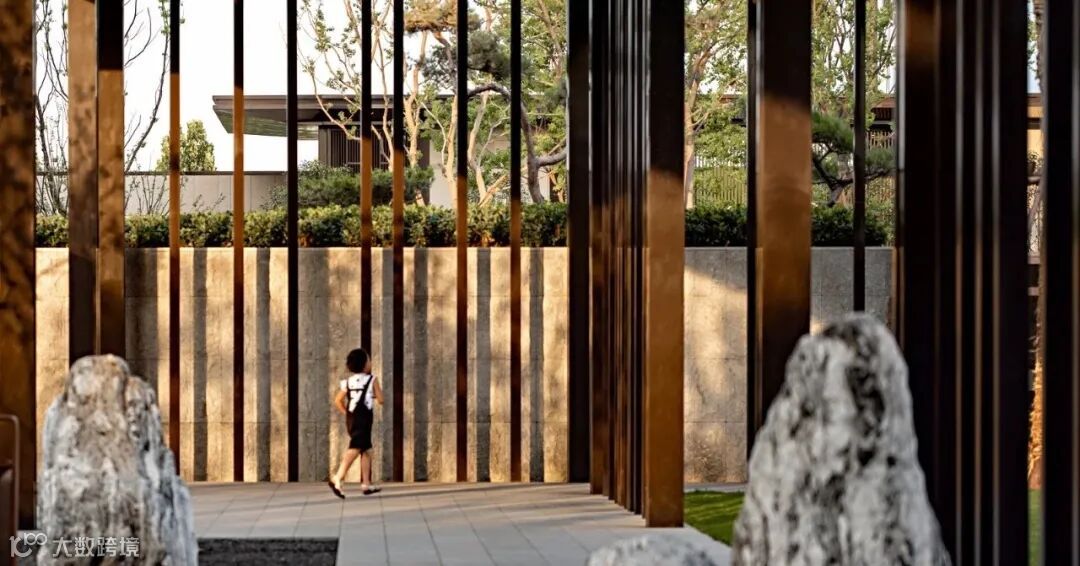 展示区公共空间设计简洁利落,秩序感承接自然的转变,线性元素、石材纹理及自然元素的结合,将质朴宁静的美学特性表现出来,宛如一首凝练的诗。