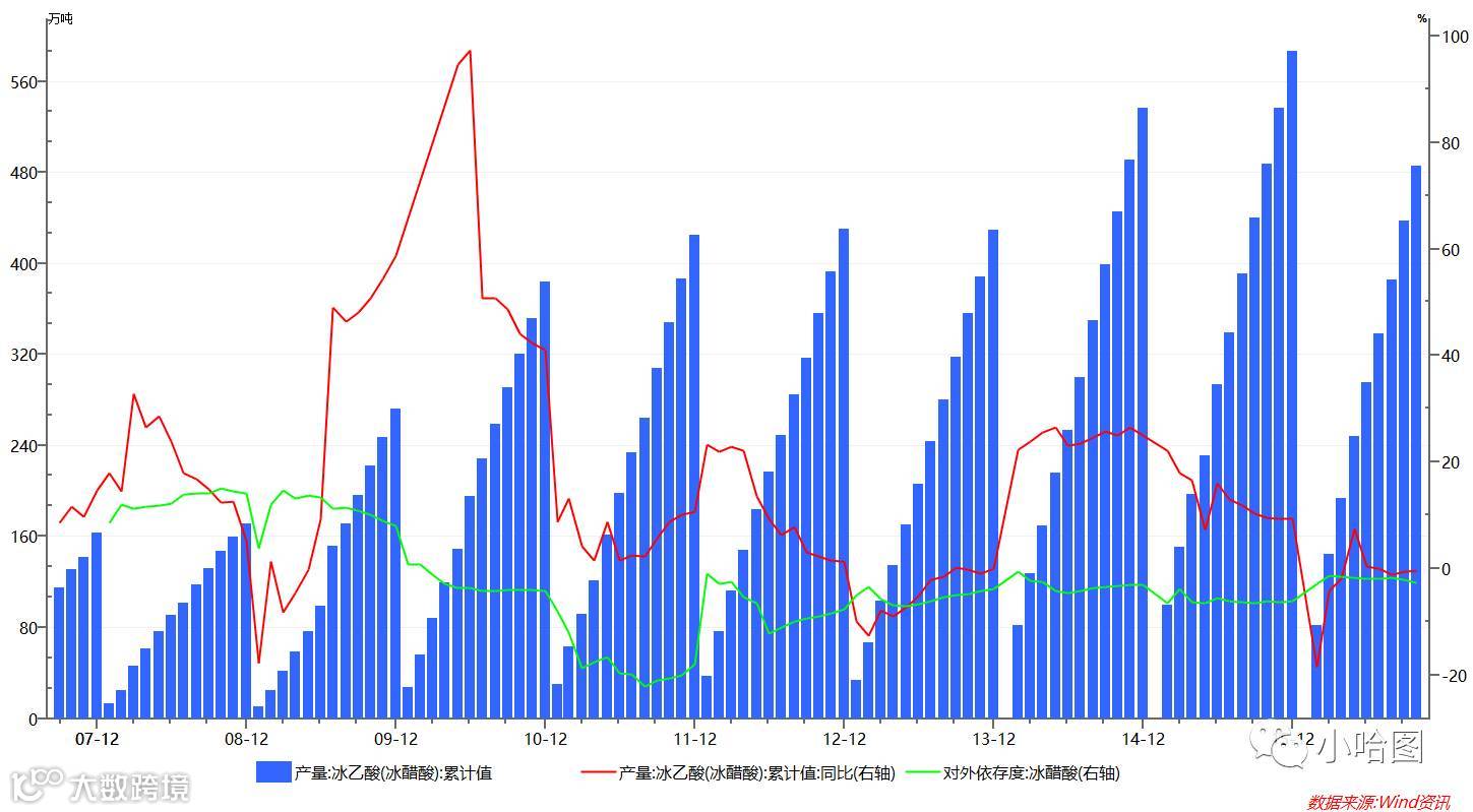 醋酸产量下行的同时,出口也逐渐减少,醋酸对甲醇的需求增长基本陷于停滞。