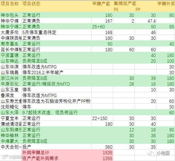 考虑甲醇这波凶猛的上涨从2016年年初就开始了,然而产量并没有凶猛地上升,因此问题显而易见——大量的产能装置已经在熊市中因为种种原因长期停产。