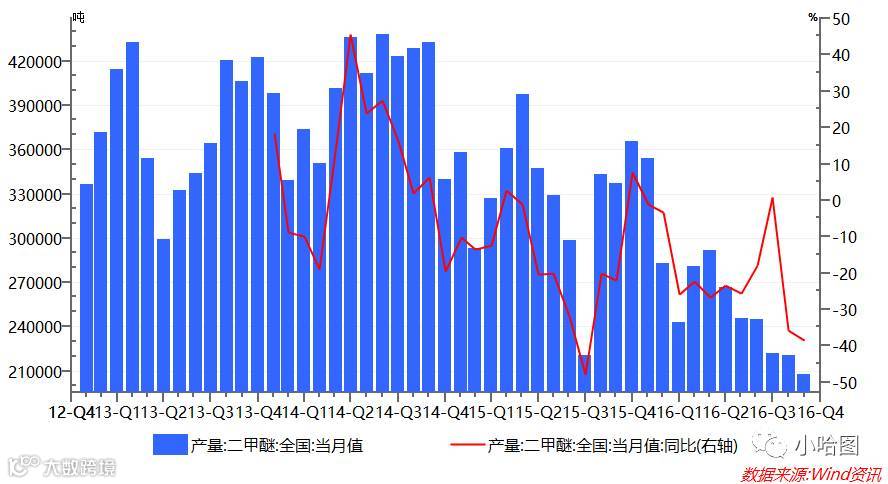 而另一个行业二甲醚,则直接陷入衰退。