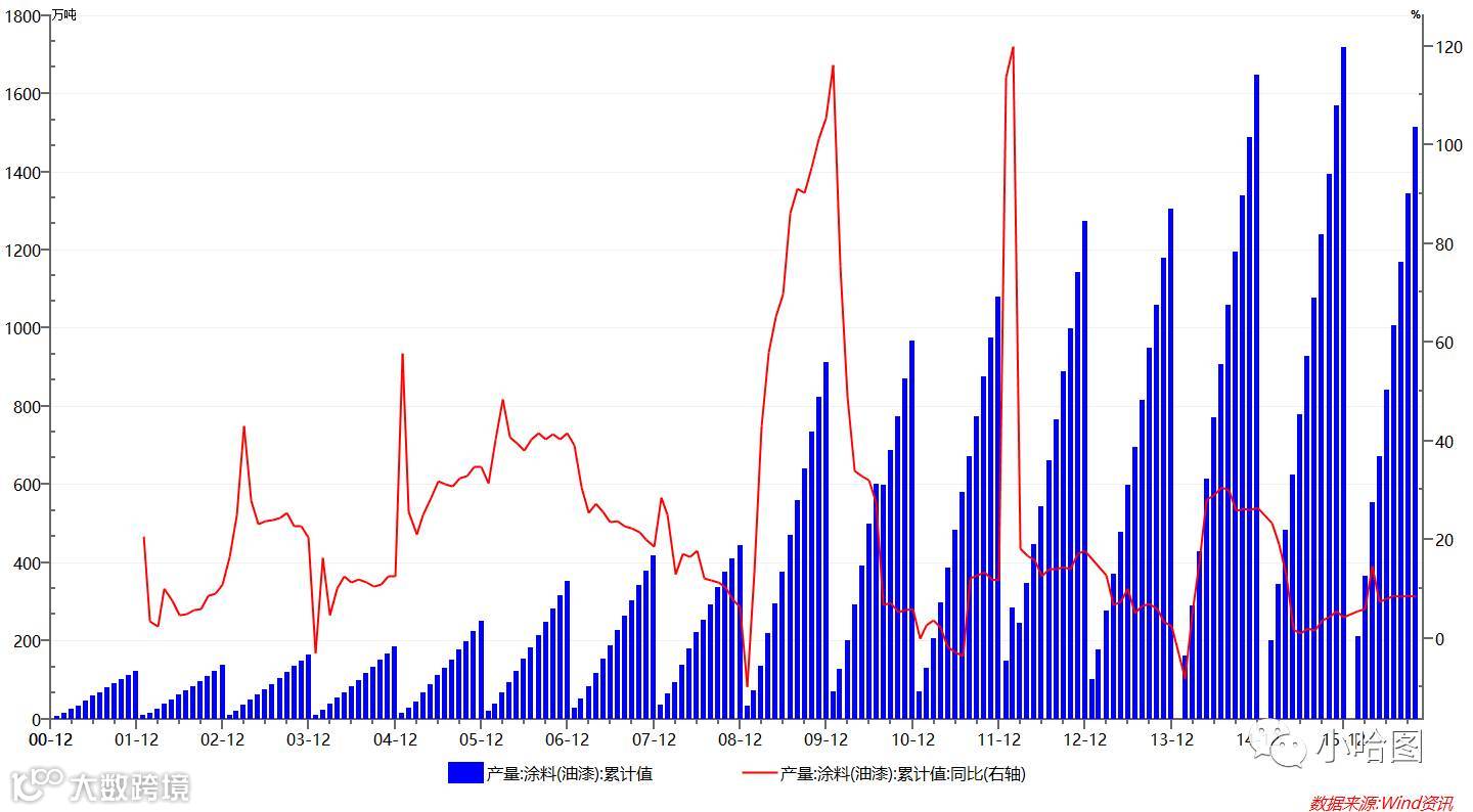 传统油漆涂料增长大幅放缓,即使受到地产小周期回暖的拉动,反弹力度也非常有限。另一方面,甲醛油漆涂料还受到更环保的新兴水性涂料的挤压,甲醛的行业前景愈加黯淡。