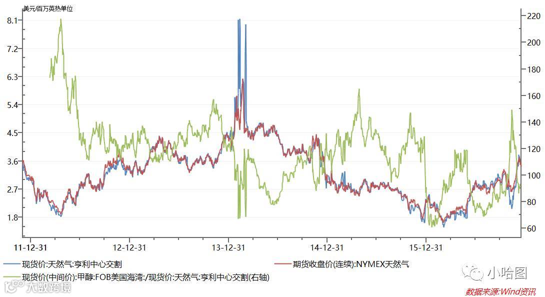 而另一方面,外盘气头产能中,成本的坍塌也迅速传导至甲醇,使得甲醇/天然气相对比价中枢不仅没有上移,以年度平均而言反而有一定程度的下降。