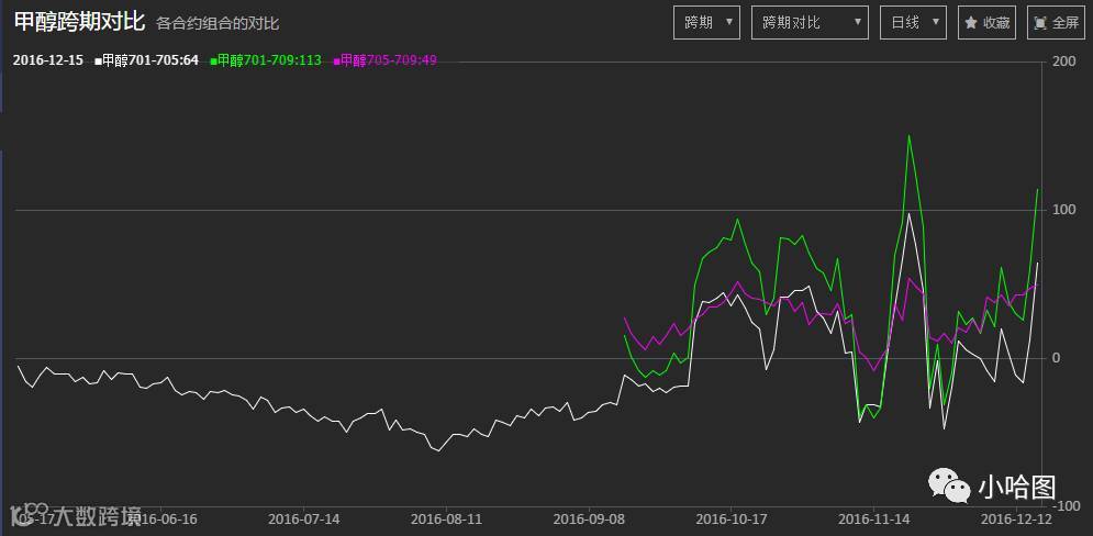 也正因于此,甲醇10月以来的这波上涨潮,表征进口状况的港口库存急剧下降提供了最好的注脚。当然纸货炒作以及暴力的资金也在推波助澜。而基本面的分歧与资金的乱窜也在跨期合约上也留下了暴力的痕迹