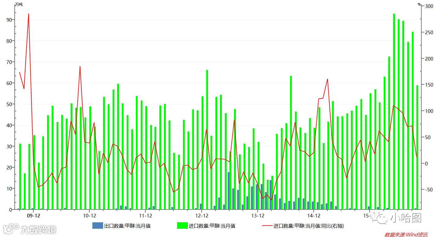 而自从中国MTO崛起之后,原来那点微不足道的出口就更加可以忽略不计了,2015年以后基本全部为进口。