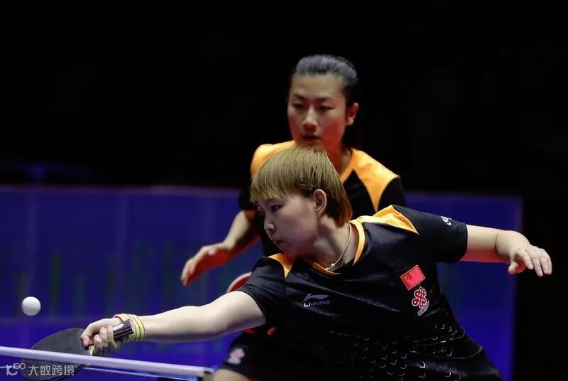 丁宁/朱雨玲(前)在比赛中
