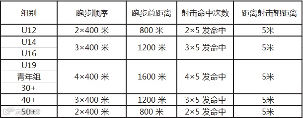 (三)激光跑比赛按轮次进行。每轮需击中射击靶的有效区域(59.5mm)5 次,不限射击次数,但需要在 50 秒以内完成。如果超过 50 秒,运动员未能完成 5 个有效命中, 需要得到身后射击裁判的指示,然后开始进行跑步,不产生处罚。