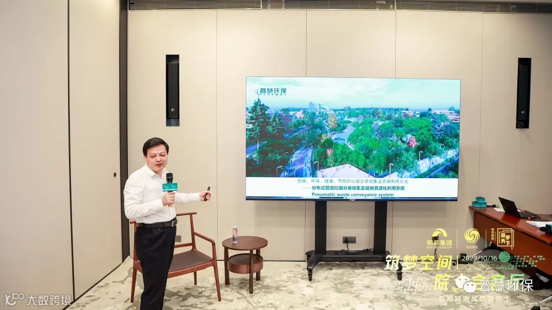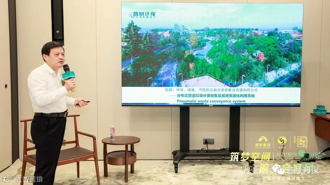 作为嘉宾, 普慧环保科技股份公司李董事长发表了 高质发展及当前房地产行业低迷的大形势下,有关分布式垃圾分类、真空管道收集及资源化利用方案的演讲,并对该颠覆型方式的减碳效果、社会及经济效益进行了分析、对比。与会的各位专家、学者及建设单位领导均非常认可,并认为是住宅3.0时代的必选标配。