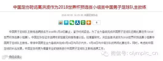 北京时间2月3日,中国足协官方宣布高洪波正式接替佩兰,出任中国国家男子足球队主教练。他将带领中国男足全力备战并完成3月24日与马尔代夫、3月29日与卡塔尔队的两场比赛任务。