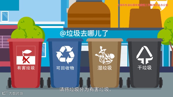 垃圾分类。将垃圾分为有害垃圾、可回收物、湿垃圾和干垃圾四类进行投放。