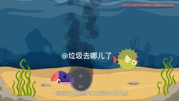 再比如,一粒纽扣电池就可以污染60万升水,这可是我们一个人一生的饮水量啊!所以千万不要把有害垃圾投放到其他垃圾桶中哦!