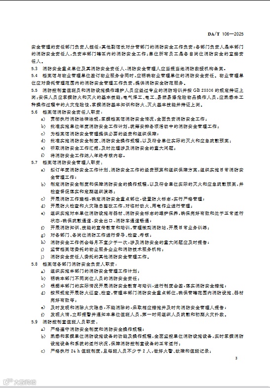 紫软信息科技《档案馆消防安全管理规范》(以下简称《规范》)(DA/T 106—2025)规定了档案馆消防安全管理的总体要求,以及消防安全责任、制度、重点部位、管理措施、教育与培训、消防档案、消防管理信息化等要求,适用于各级各类档案馆消防安全管理,其他档案保管机构参照使用。《规范》将于2026年2月1日起实施。