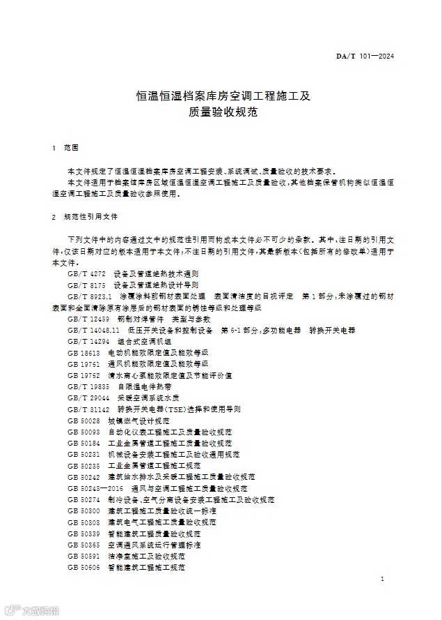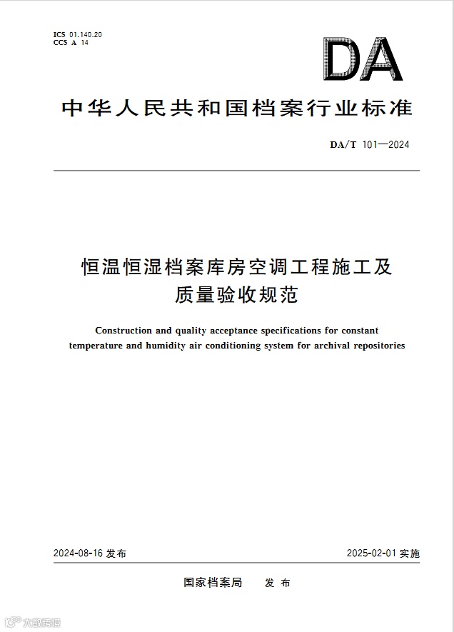 近日,国家档案局发布《恒温恒湿档案库房空调工程施工及质量验收规范》行业标准。2025-02-01实施。