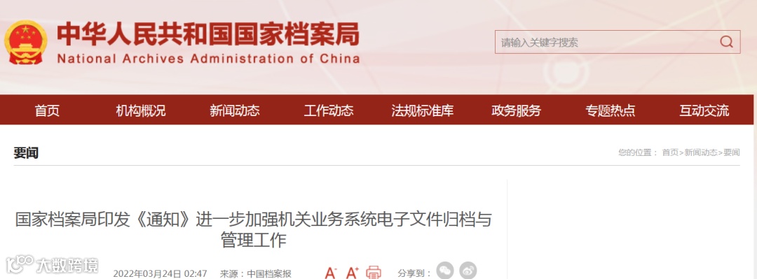 近日,国家档案局印发《关于进一步加强机关业务系统电子文件归档与管理工作的通知》(以下简称《通知》),明确了业务系统电子文件归档与管理工作的总体要求、主要任务和工作安排,并提出了推进业务系统归档工作的思路、模式与方法。