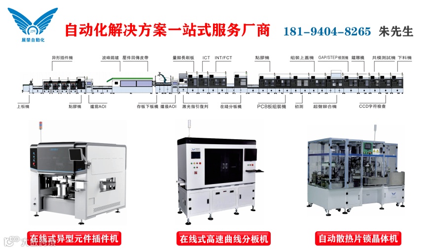 热销产品:DIP制程整线自动化设备、异形插件机、在线&离线PCBA铣刀分板机、自动散热片锁晶体机、在线&离线焊锡机、PCBA洗板机、在线涂覆点胶机、部品成型加工机、自动喷码机、激光打标机、自动贴标机、智能AGV、亮灯货架、AI插件机、钢网检查机、SMT料带自动接料机、3D-AOI等SMT相关设备。
