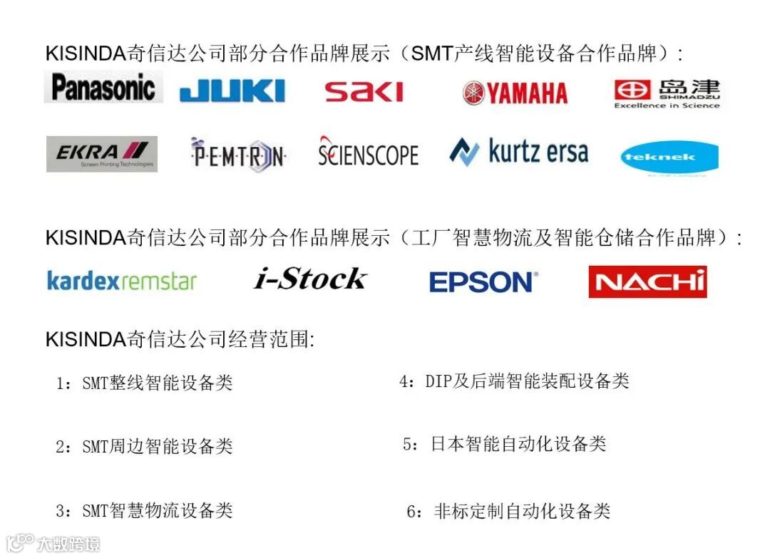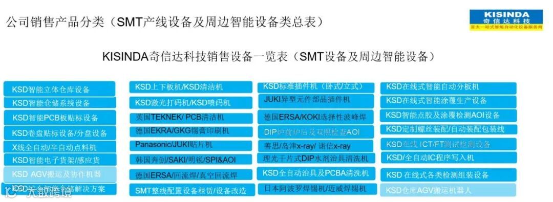KISINDA深圳市奇信达科技有限公司成立于2012年,主营SMT整线设备/及SMT周边智能设备,智能仓储设备,智能THT插件设备/智能自动化整线设备及实验设备及非标自动化设备,是SMT智慧工厂智能自动化设备专业服务商。