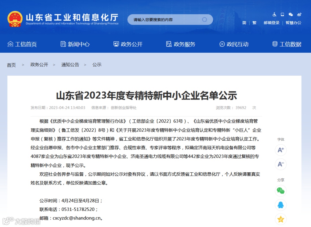 近日,根据《优质中小企业梯度培育管理暂行办法》(工信部企业〔2022〕63号)、《山东省优质中小企业梯度培育管理实施细则》(鲁工信发〔2022〕8号)和《关于开展2023年度专精特新中小企业培育认定和专精特新“小巨人”企业申报(复核)推荐工作的通知》等文件精神,省工业和信息化厅官网公示了2023年度通过复核的专精特新中小企业名单,山东紫软信息科技有限公司名列其中。认定为专精特新中小企业为紫软信息科技的可持续发展打下坚实基础。