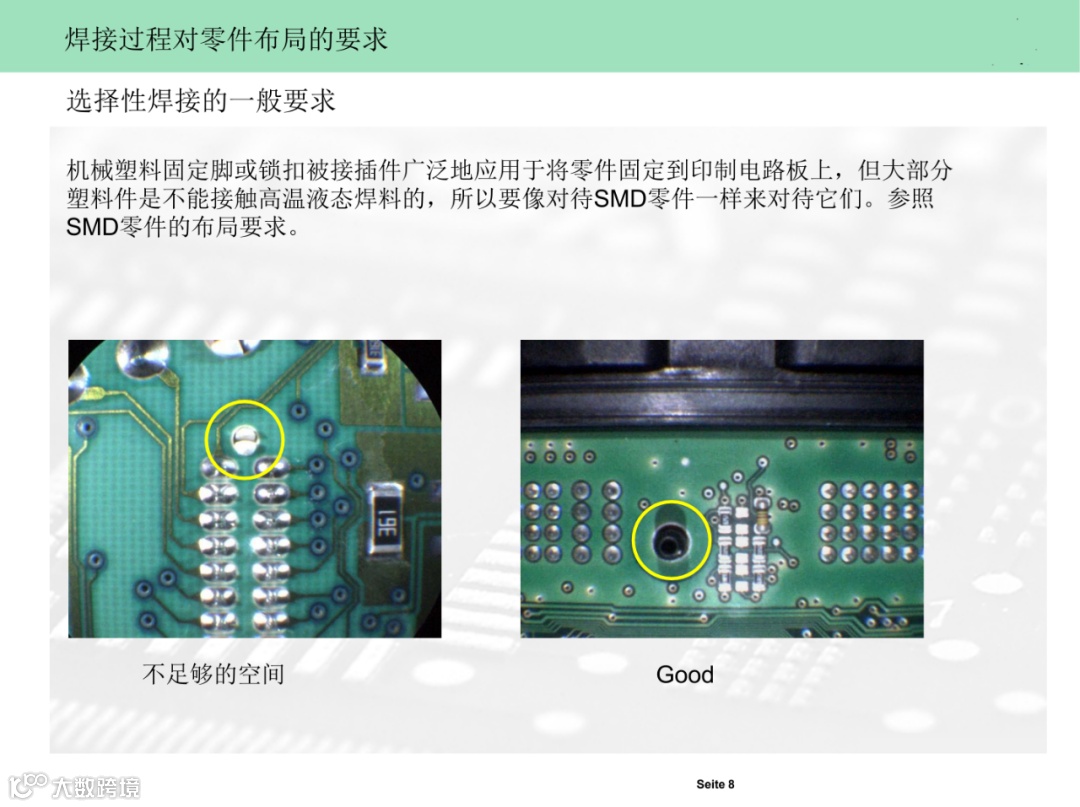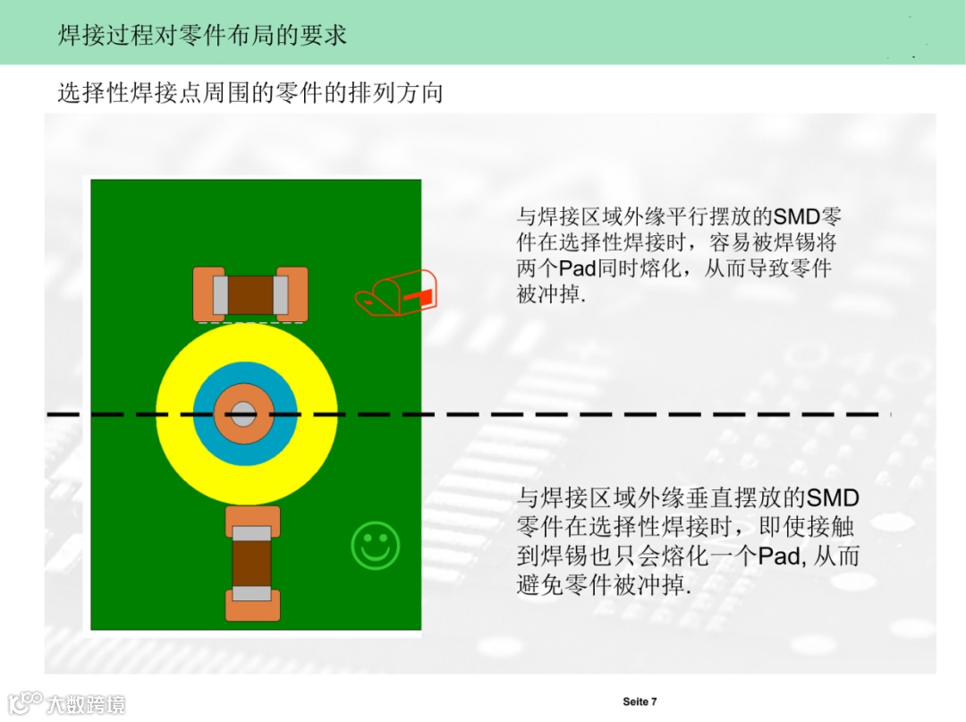 1、不能在焊接面分布高密度、细间距贴片元件;