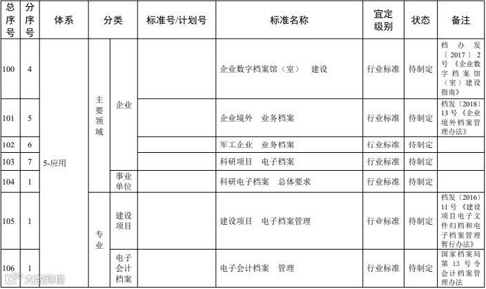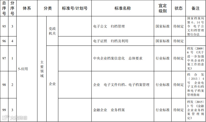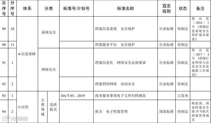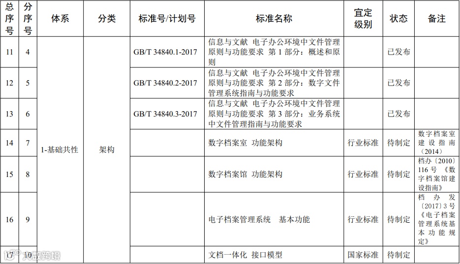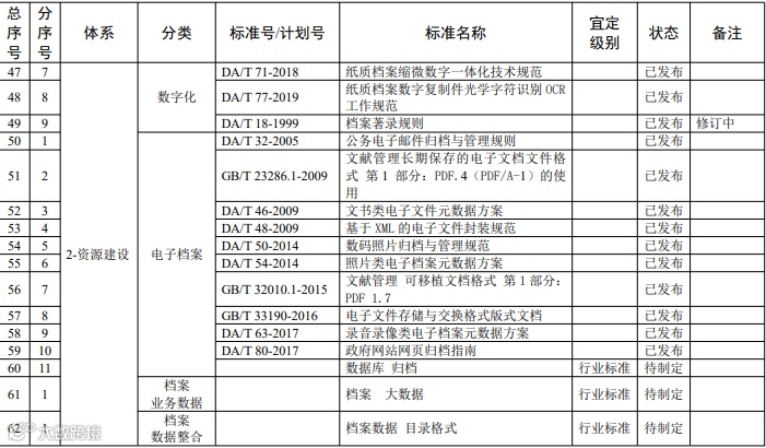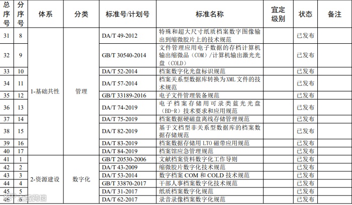 档案信息化标准体系明细表