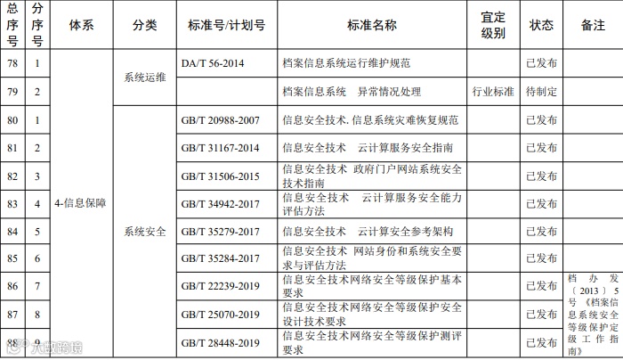主要规范各类档案信息系统的运行过程中 的防护、检测及其它技术要求的标准。