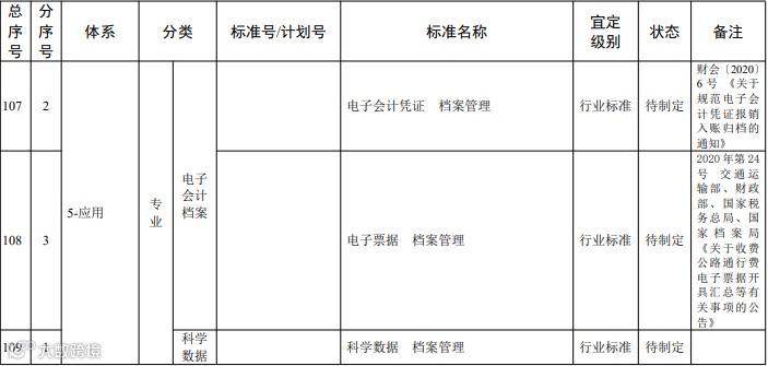 面向建设项目、电子会计档案等典型应用,制定配套标准。