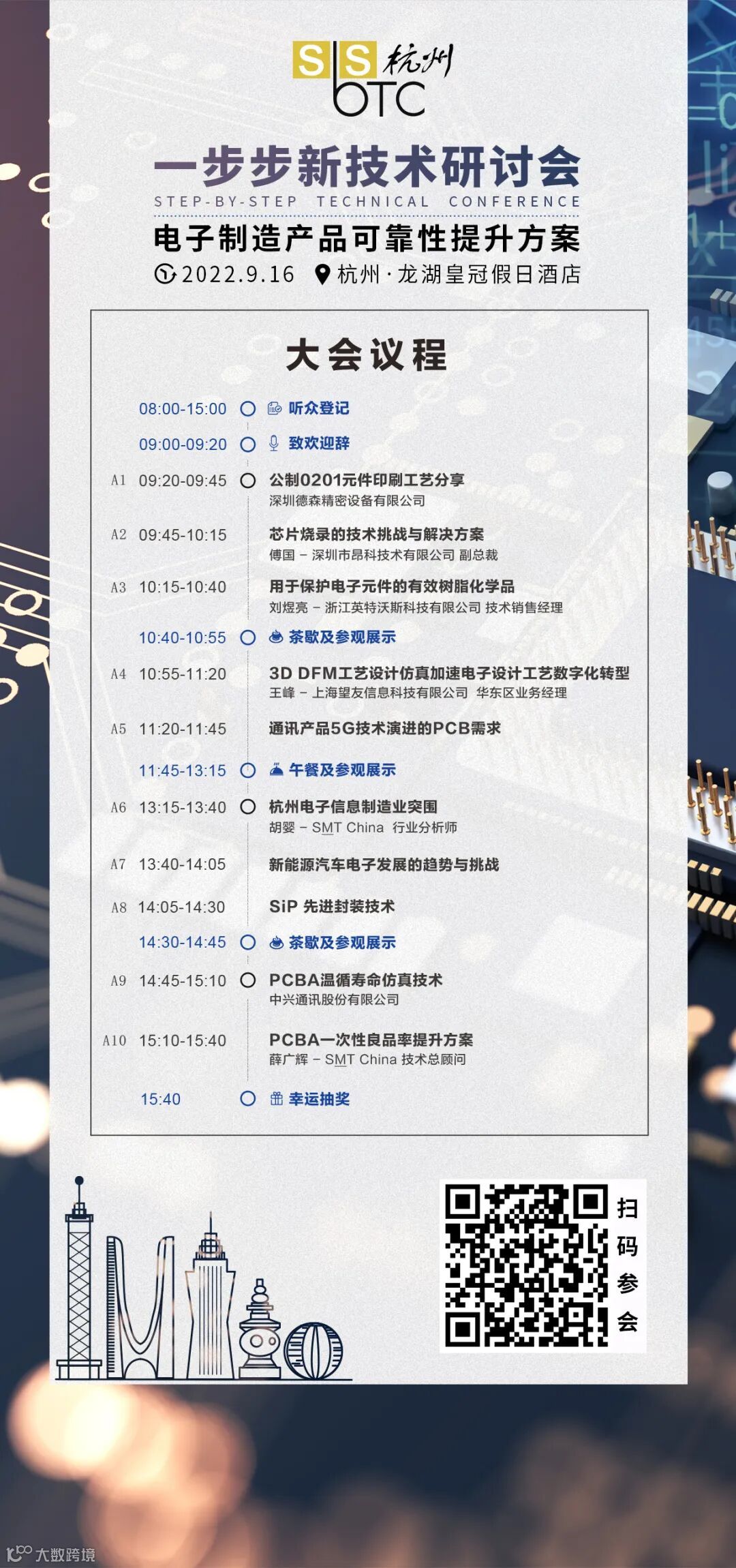 打通产业链离不开各方进行良好沟通。为打造智能制造产业信息交流平台,今年“一步步新技术研讨会”第七次在杭州办会。9月16日,一步步新技术研讨会将以《电子制造产品可靠性提升方案》为主题在杭州龙湖皇冠假日酒店进行单场研讨会,探讨在智能制造之下,传统的制造流程如何重组来完成智能工厂现代化转型,同时搭建贸促平台,加快全产业链集聚。届时来自杭州及长三角的技术人士将齐聚一堂,聚焦智能制造,共享开放创新。